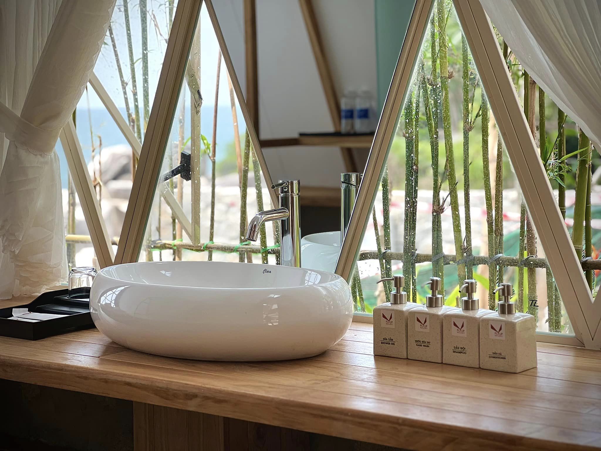 Các phòng nghỉ tại Fly Up Resort được trang bị đầy đủ tiện nghi hiện đại và có view ra biển tuyệt đẹp. Bạn có thể tận hưởng không gian thoải mái và hòa mình hòa thiên nhiên để nghỉ ngơi sau mỗi ngày vui chơi và thám hiểm.