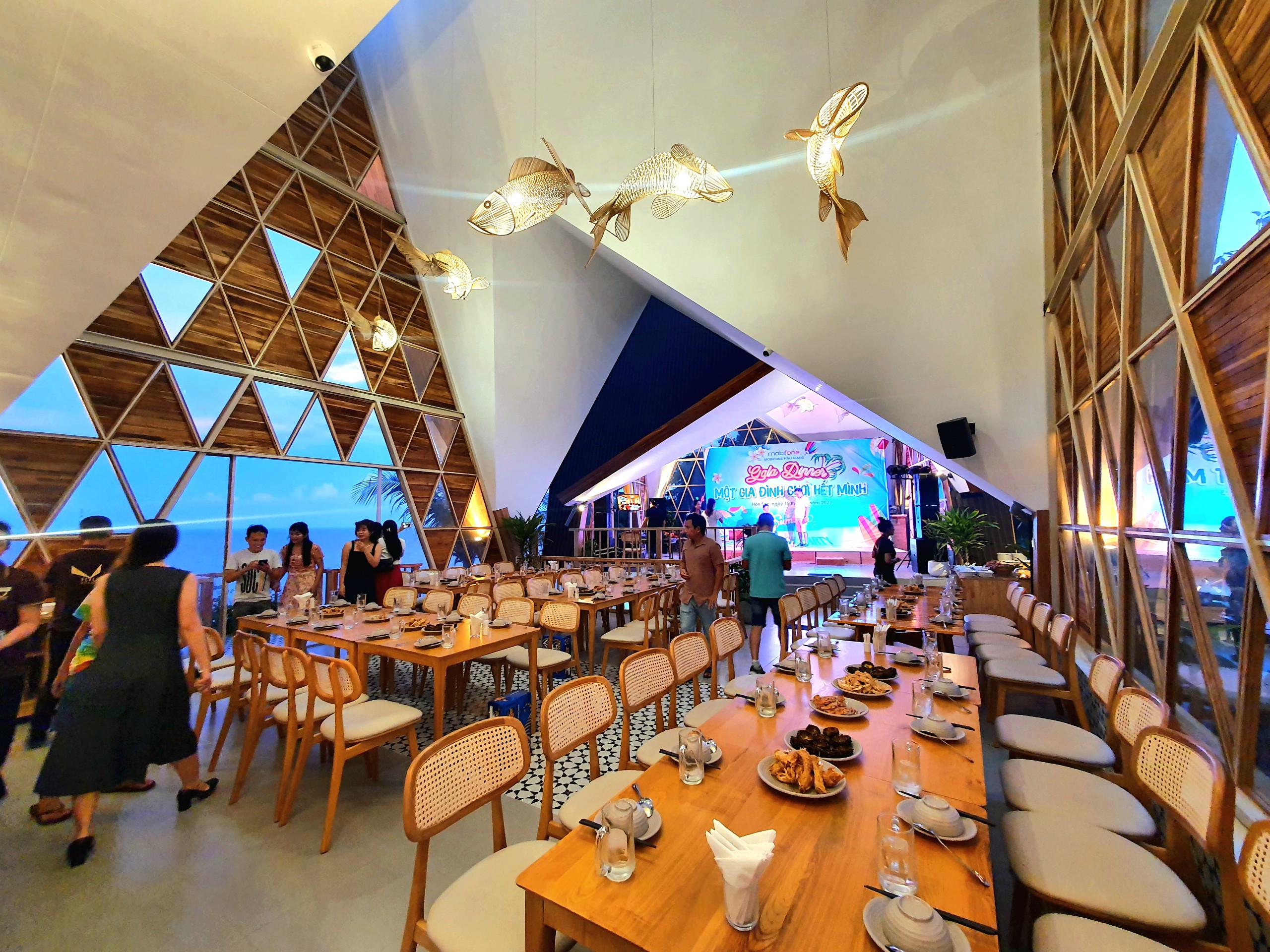Nhà hàng Đại Dương tại Fly Up Resort mang đến một loạt trải nghiệm ẩm thực đặc biệt và nổi bật mà bạn không nên bỏ lỡ. Dưới đây là những điểm nổi bật của Nhà hàng Đại Dương:
