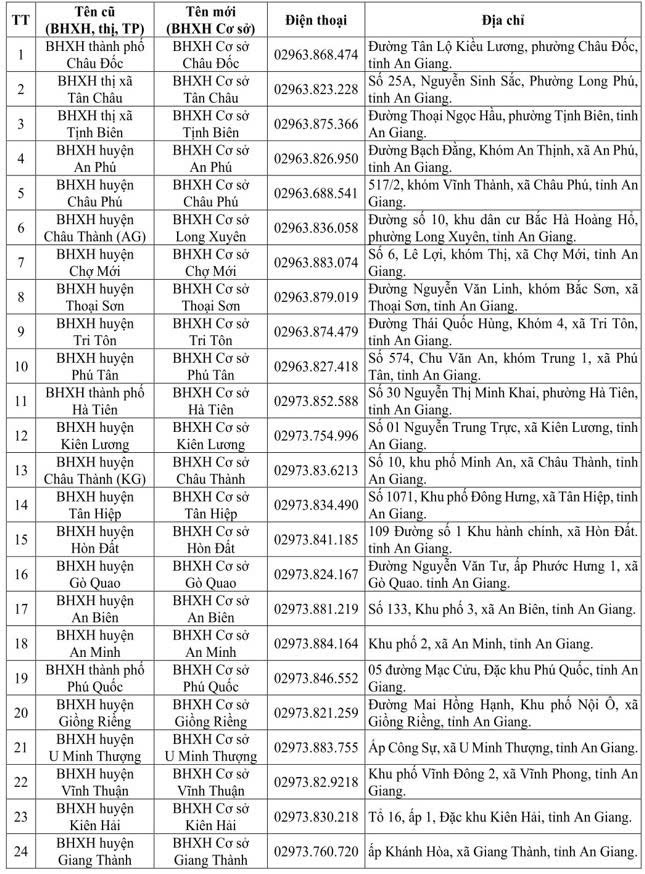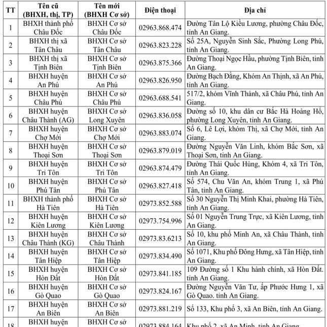 1. Bảo hiểm xã hội khu vực XXXIV (Kiên Giang - An Giang) thành Bảo hiểm xã hội tỉnh An Giang.