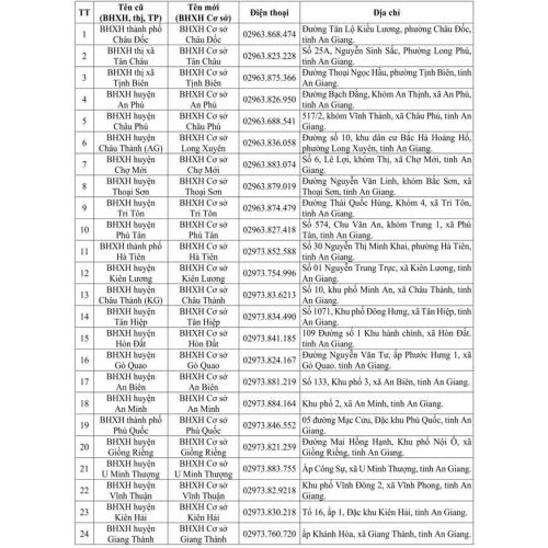 Để thuận tiện cho việc giao dịch, Bảo hiểm xã hội tỉnh An Giang xin trân trọng thông báo việc thay đổi tên gọi như sau: