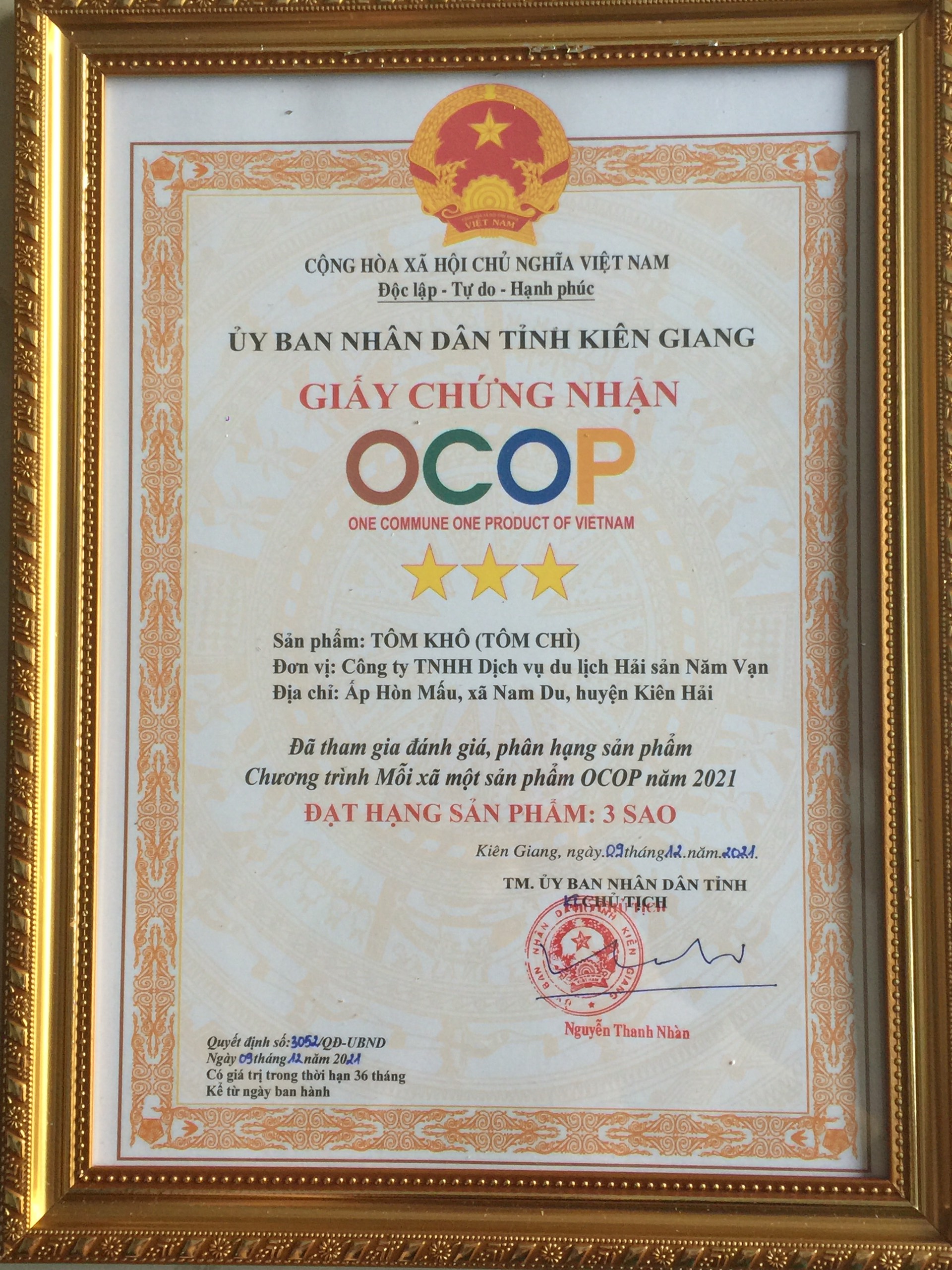 Chứng nhận OCOP tôm khô