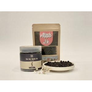 Tiêu đen nguyên hạt là một loại gia vị được lựa chọn và thu hái cẩn thận từ hạt tiêu chín đỏ, sau đó được sấy khô tỉ mỉ, trước khi được đóng gói giữ nguyên hạt. Hạt tiêu sẽ có màu đen và có hương vị cay nồng, thậm chí hơi ngọt. Đây là loại gia vị quen thuộc được sử dụng trong các bữa ăn của gia đình Việt, cũng là một loại gia vị không thể thiếu khi chúng ta muốn món ăn của mình trở nên ngon hơn.