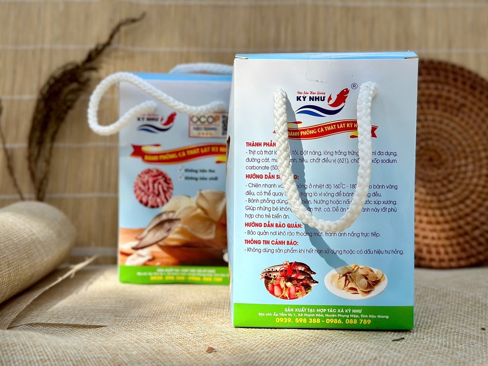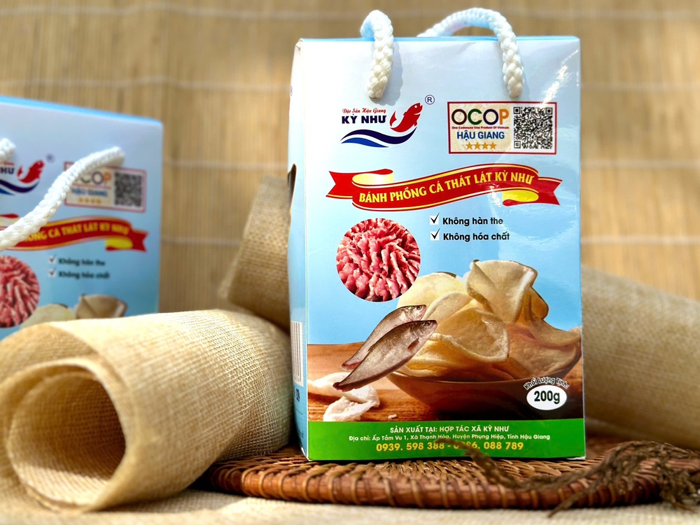 Bánh Phồng Cá Thát Lát Kỳ Như là đặc sản nổi tiếng của Hậu Giang, đạt danh hiệu OCOP 4 sao, không chứa hàn the hay hóa chất độc hại. Được chế biến từ cá thát lát tươi ngon và các nguyên liệu tự nhiên, sản phẩm mang đến hương vị thơm ngon, giòn rụm, là lựa chọn hoàn hảo cho bữa ăn nhẹ hoặc món ăn bổ dưỡng cho trẻ em.