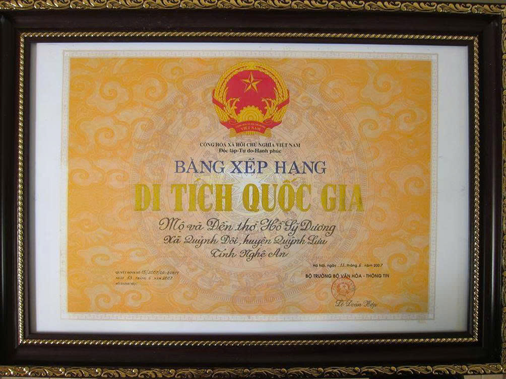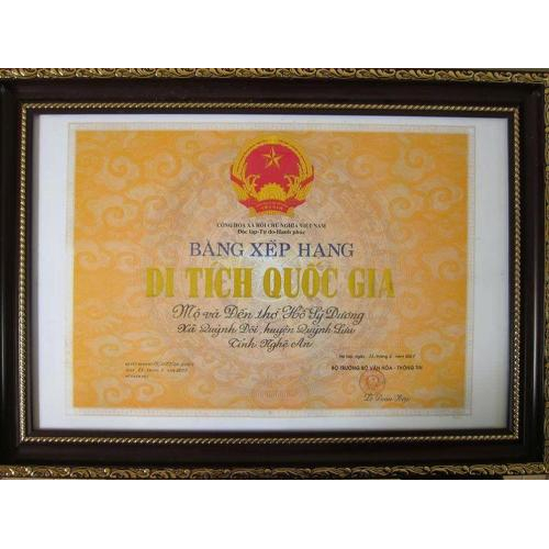 Bảng xếp hạng Di tích Quốc gia Mộ và Đền thờ Hồ Sỹ Dương