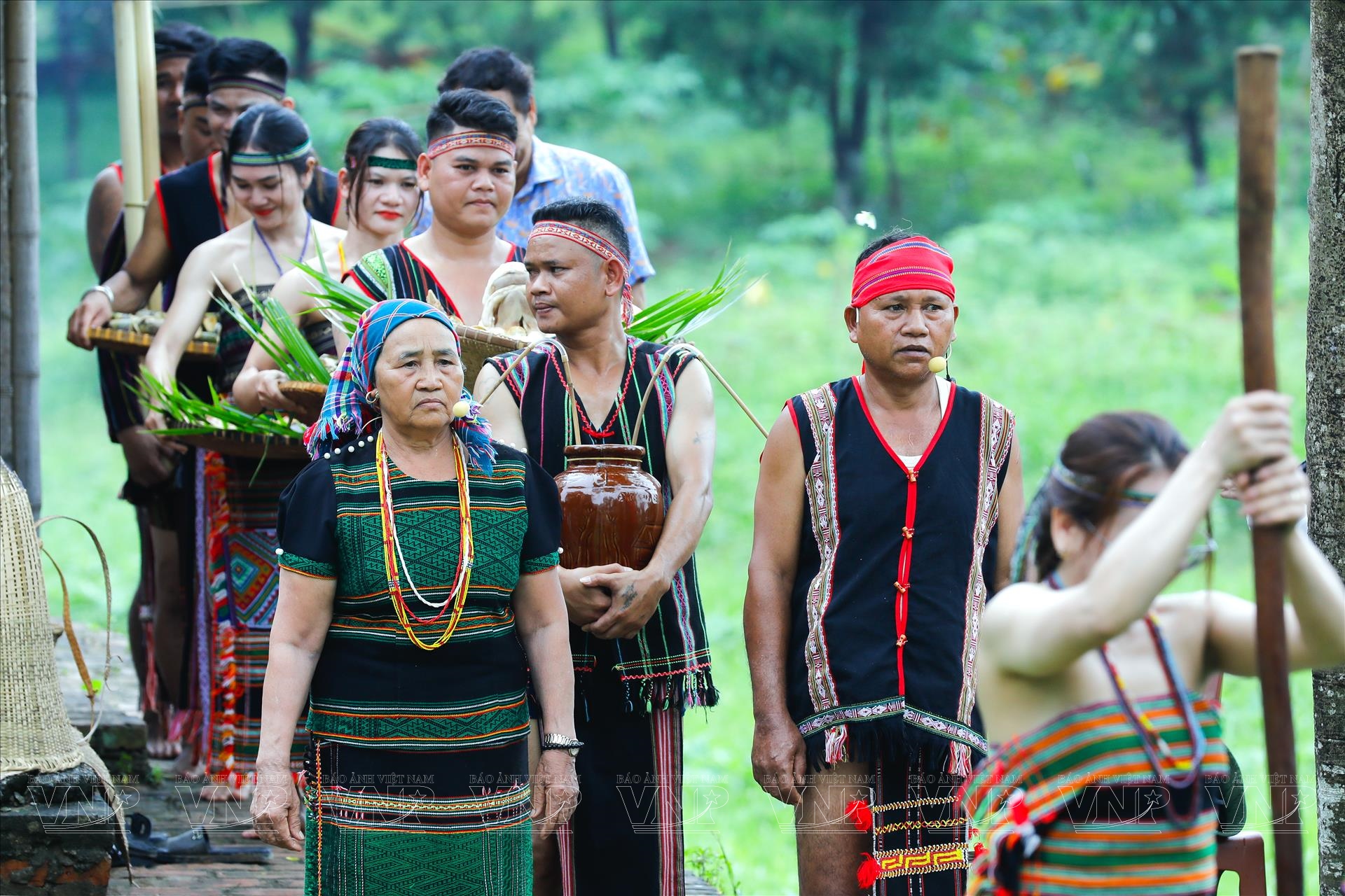 Khi khách từ các bản làng đến tham dự buổi lễ, đồng bào M’Nông thực hiện nghi thức đón tiếp nồng hậu tại cổng làng. Trong âm hưởng cồng chiêng và những câu hát dân gian, khách được mời quây quần bên nhau như một gia đình lớn trước khi nghi lễ chính bắt đầu.