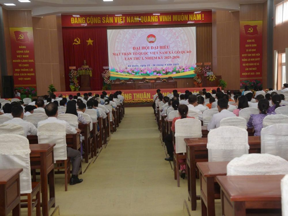 Đại hội Uỷ ban mặt trận Tổ quốc Việt Nam xã Gò Quao diễn ra trong 2 ngày chiều 2592025 diễn ra phiên trù bị và sáng 2692025 Ủy ban Mặt trận Tổ quốc Việt Nam xã Gò Quao long trọng tổ chức phiên chính thức