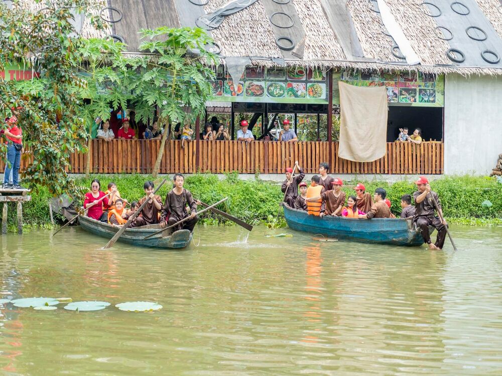 - Chèo xuồng ba lá dọc các con kênh nhỏ, lắng nghe tiếng nước vỗ mạn xuồng và cảm nhận sự gần gũi của miền Tây sông nước.