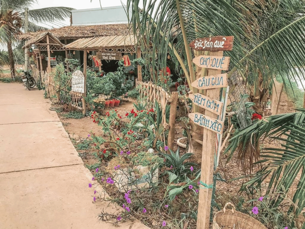 Đến Cồn Chim Trà Vinh, bạn không chỉ có những trải nghiệm gần gũi mà còn thu về hàng loạt bức ảnh “sống ảo” cực chất. Từ giàn mướp xanh mướt, hàng dừa nghiêng bóng, bờ cỏ lau đung đưa trong gió, đến lối vào nhà rực rỡ hoa mười giờ hay buồng dừa nước trĩu quả – tất cả đều tạo nên khung cảnh mộc mạc mà nên thơ. Ngay cả nhà vệ sinh tại Cồn Chim cũng gây ấn tượng với tấm biển “Kho vàng” đầy dí dỏm và con đường ngập sắc hoa dẫn lối. Tất cả hòa quyện tạo nên một Cồn Chim dung dị, thân thương và đậm đà bản sắc miền Tây sông nước.