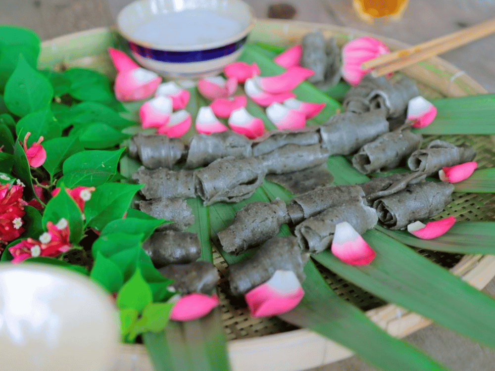 Mỗi hộ gia đình ở Cồn Chim đều có món ăn đặc sản riêng, không trùng lặp, tạo nên nét đa dạng và độc đáo trong ẩm thực nơi đây. Ghé nhà cô Sáu Giàu, du khách sẽ được thưởng thức bánh xèo vàng ươm và nhâm nhi chén nước sả ấm bụng. Đến bếp xưa của cô Vân, bạn sẽ được nếm thử mứt dừa non ngọt dịu, chén sương sâm mát lạnh giữa trưa hè. Còn tại nhà cô Ba Sữa, món bánh rau mơ dân dã được làm từ những chiếc lá mơ xanh hái ngay quanh vườn khiến ai nếm qua cũng nhớ mãi.