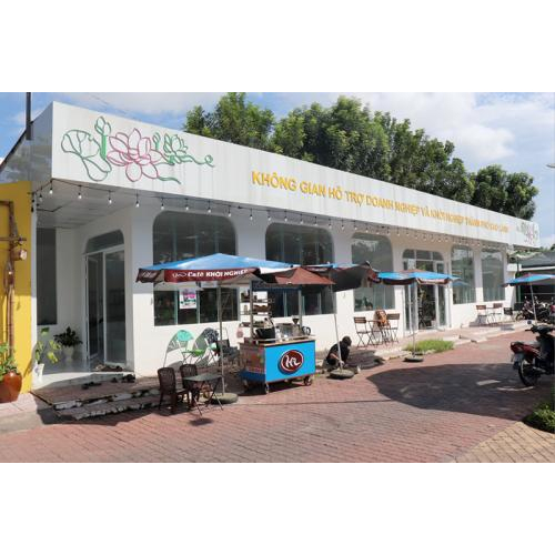 Hội Quán Khởi Nghiệp Sáng Tạo với 3 khu vực: Khu vực trưng bày, giới thiệu các sản phẩm đặc sản của địa phương, sản phẩm OCOP, sản phẩm khởi nghiệp của thanh niên như: trà sen, trà đậu, nước mát, rượu trái cây, đông trùng hạ thảo, trái cây sấy dẻo, các sản phẩm tiểu thủ công nghiệp, quà lưu niệm... để phục vụ khách tham quan, mua sắm và trải nghiệm. Đây là nơi tổ chức các buổi tư vấn, trang bị kiến thức khởi nghiệp, giao lưu kết nối nhà đầu tư với người khởi nghiệp.