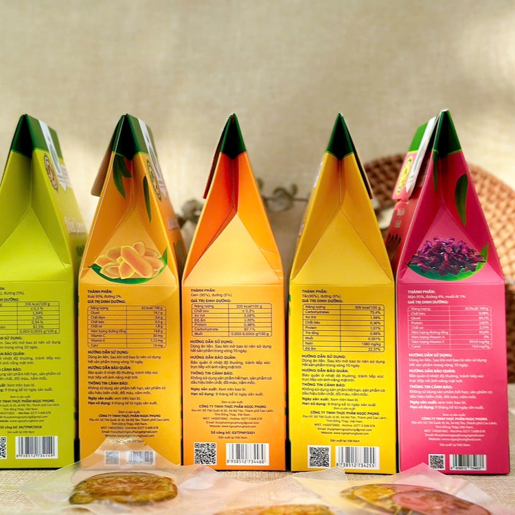 Từng lá lát cam tươi được đóng gói kỹ càng trong từng túi hút chân không, giúp sản phẩm sạch sẽ, dễ ăn, dễ bảo quản. Khi ăn chỉ cần xé miệng túi và dùng thôi. Có thể vừa ăn cam sấy vừa uống trà, như thế sẽ thấy thích thú hơn hẳn đó.