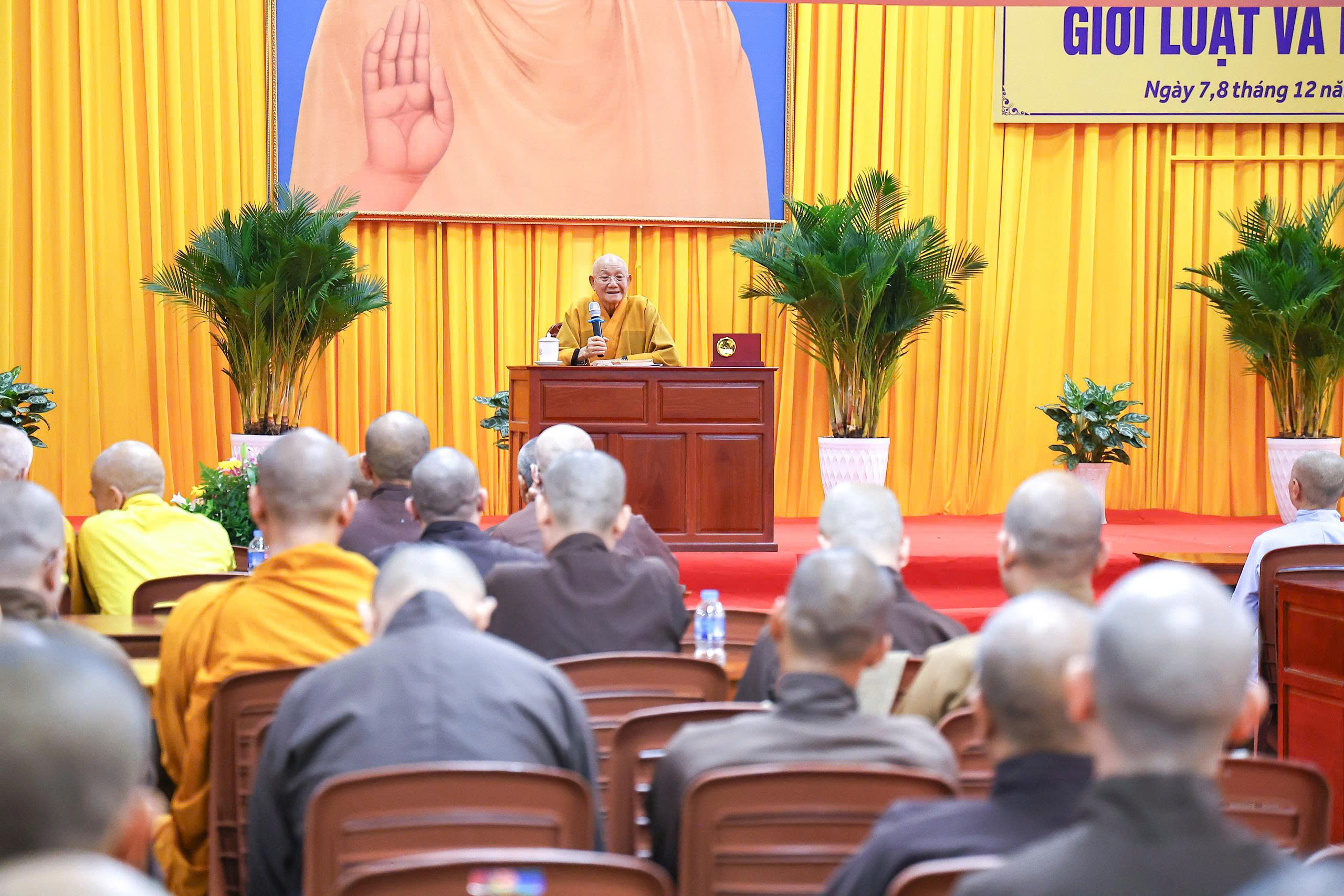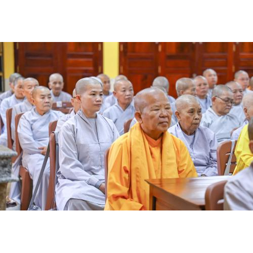Cuối buổi thuyết giảng, Hòa thượng đã dành thời gian giải đáp cặn kẽ các thắc mắc của chư Tôn đức, đồng thời bày tỏ những ưu tư về việc ứng dụng và gìn giữ giới luật trong đời sống tu học hiện nay của đại chúng.