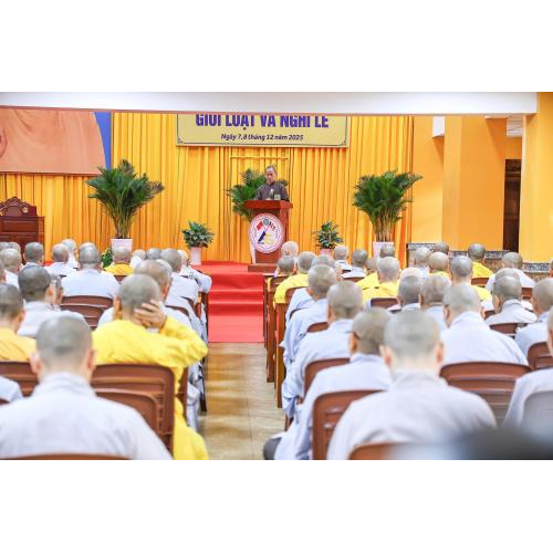 Mở đầu buổi thuyết giảng, Trưởng lão Hòa thượng đã nhấn mạnh tầm quan trọng tối thượng của Giới luật trong việc gìn giữ và duy trì mạng mạch Phật pháp, đúng như tinh thần: “Tỳ ni tạng trụ Phật pháp cửu trụ, Tỳ ni tạng diệc Phật pháp diệt diệc”. Ngài khẳng định rằng việc tổ chức khóa Bồi dưỡng Luật học lần này là vô cùng cần thiết, đặc biệt trong bối cảnh xã hội hiện nay đang có nhiều biến động, đòi hỏi người xuất gia phải tăng cường trau dồi giới đức để làm nền tảng cho mọi pháp tu.