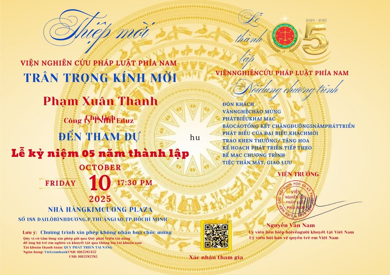 Ngày 10102025 Hệ sinh thái Liên minh đã vinh dự đồng hành và tham dự Lễ kỷ niệm 5 năm thành lập Viện Nghiên cứu Pháp luật Phía Nam