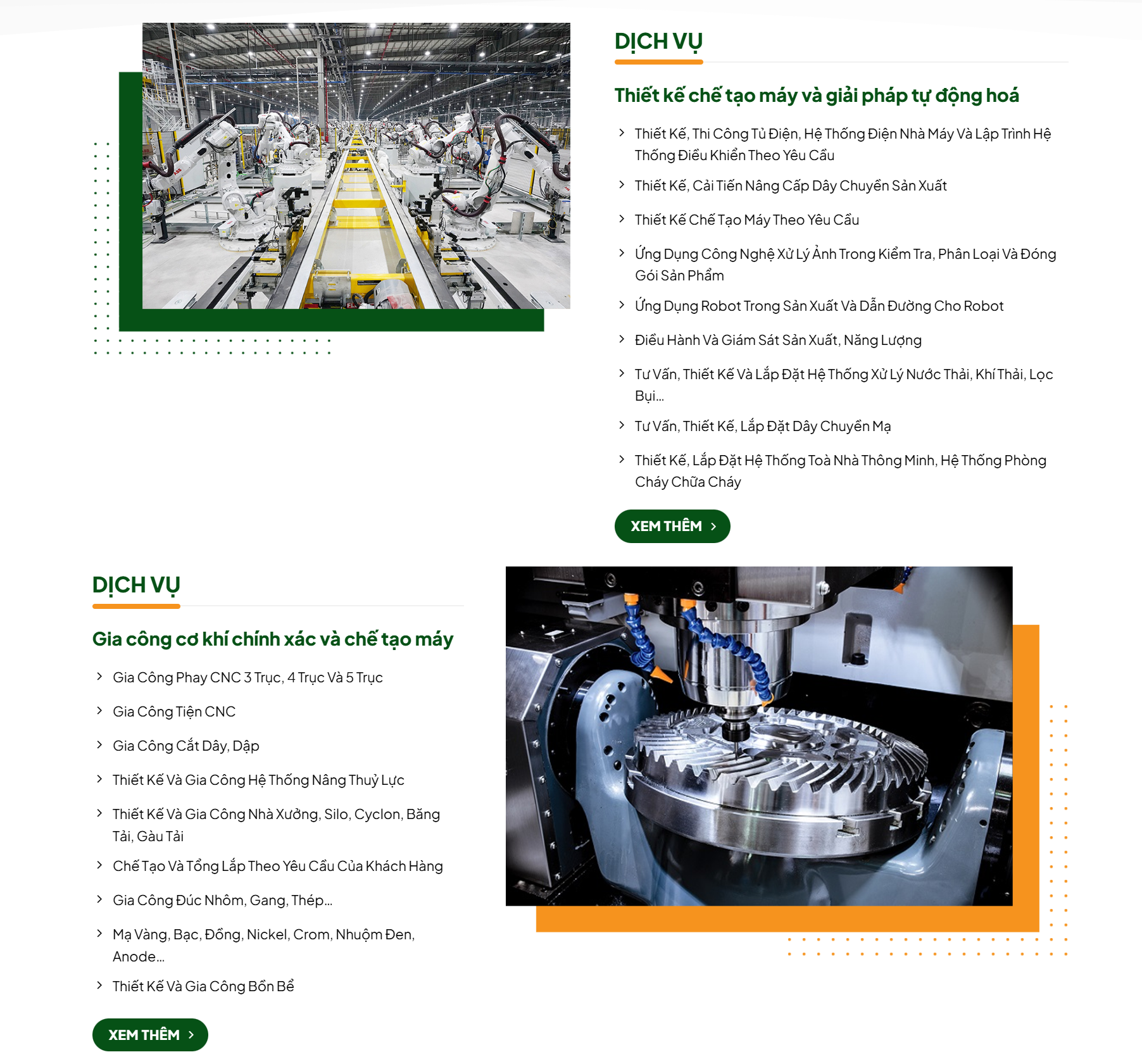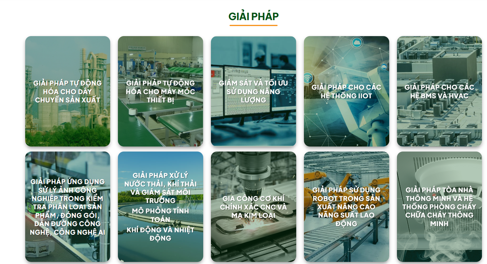 Giải pháp tự động hóa: thiết kế, cải tiến và nâng cấp dây chuyền sản xuất; giám sát năng lượng; ứng dụng robot và AI trong công nghiệp; tòa nhà thông minh; hệ thống HVAC và BMS.